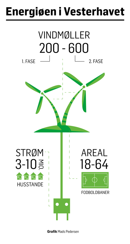 Den kunstige ø 80 kilometer ude i Vesterhavet bliver danmarkshistories største anlægsprojekt med en pris på 210 milliarder kroner. Det svarer til op imod fem Storebæltsbroer eller fire Femernbælt-forbindelser. Det oplyser Klima-, Energi- og Forsyningsministeriet i en pressemeddelelse.