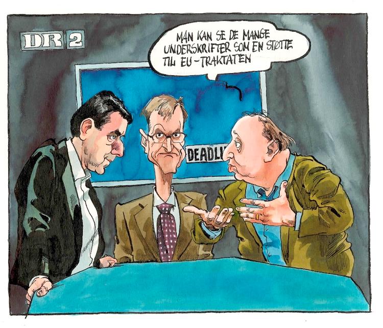 Da han kom til bryghuset, havde hun først været bjergtaget af hans håndværksmæssige kunnen, hans produktkendskab og af den ildhu, hvormed han kastede de belgiske trappistmunkes århundredgamle ekspertise ind i kampen for at redde hendes bryghus, men som dagene var gået, havde hun fået en sær, varm følelse indeni, når han var i nærheden eller hun blot tænkte på ham – og det gjorde hun hele tiden. Det var kærlighed. Arbejdet med juleøllet tillod normalt ikke, at de sad længe oppe. Men i aften var tv’et tændt hos Elisabeth, og Luc sad smilende i hendes sofa. En opstemt landsretssagfører Grandgreen-Andersen havde ringet og sagt, at de skulle se DR 2. Elisabeth fik et chok, da hun så et billede af bryghuset bag Kurt Strand: »Velkommen til Deadline. Kapitalfonden Force Majeure Invest vil opføre verdens største neglelakfjernerfabrik i den lille by Bajerslev. Det vil betyde, at det lokale bryghus må lukke – medmindre den 28-årige Elisabeth Iversen, som i øjeblikket forsøger at redde den lille familievirksomhed, kan købe sin farbror, Henning Iversen, ud. Der findes en aktionæraftale, som gør det muligt, men hun har ikke den fornødne kapital. Den slags spil om danske virksomheder foregår hver eneste dag – og erhvervslivet plejer selv at klare paragrafferne. Men denne sag er speciel, fordi Dagbladet Politiken er gået ind i kampen. Med en underskriftsindsamling søger avisen at lægge pres på farbror Henning, der står til at få en millionbonus, hvis handelen går igennem. Med mig i studiet er Politikens chefredaktør Tøger Seidenfaden og cheføkonom fra den borgerlige tænketank Repos Mads Sundby Larsen. Tøger Seidenfaden, I opfordrer direkte jeres læsere til at støtte Bajerslev Bryghus. I siger åbent, at I vil lægge pres på farbror Henning. Hvorfor i alverden blander I jer i det? »Man skal være opmærksom på, at bestræbelserne på at redde Bajerslev Bryghus er et eksempel på EU-samarbejde, når det er allersmukkest. For hvad er det, vi ser? Vi ser en belgisk munk, en polsk vvs-tekniker og en dansk bryggerdatter kæmpe side om side mod den griskhed og grådighed, der udmønter sig i, at farbror Henning går efter at score 75 millioner. Derfor har vi startet underskriftsindsamlingen, og jeg er stolt over at kunne sige, at vi i morgen vil bringe hundredvis af underskrifter ud til de gode folk på bryghuset. Det er ikke for meget at sige, at læserne har vist sig at være vilde med europæisk samarbejde«, fastslog Tøger Seidenfaden. Mads Sundby, du er ikke glad for avisens initiativ? »Nej, det er helt vanvittigt, at en avis, der ellers bekender sig til markedsøkonomi, forfalder til den slags. Lad falde, hvad ikke kan stå. Og Tøger Seidenfaden fusker med tallene, for bonussen til farbror Henning er kun på 29,5 millioner efter skat. Hvis jeg var chefredaktør på Politiken, ville jeg omgående fyre de folk, der sætter sådan en underskriftsindsamling i værk!«. Vil du fyre folkene, der tegner og skriver om Bajerslev Bryghus, Tøger Seidenfaden? »Nej, det vil jeg bestemt ikke. Tværtimod fortjener de nogle klækkelige lønforhøjelser«, sagde chefredaktøren. Kurt Strand sagde tak. Elisabeth og Luc omfavnede hinanden.