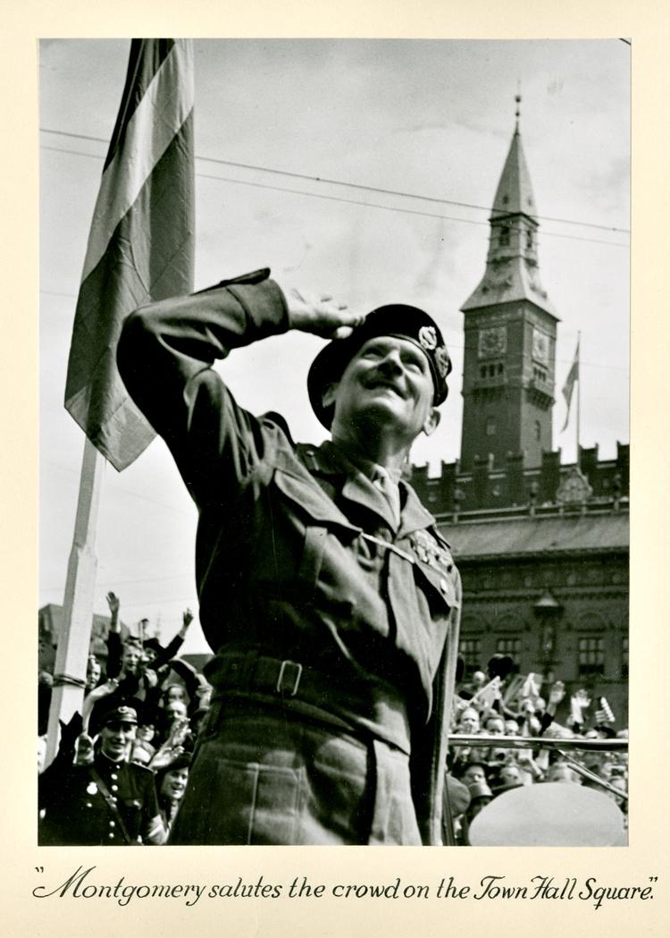Montgomery gør honør med rådhustårnet i baggrunden. Det er nærmest ikonisk.
