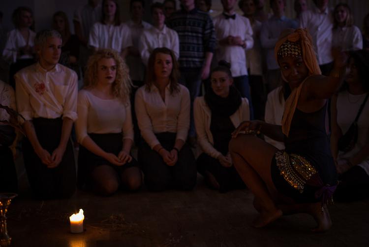 Her har klasselokaler og fællesrum været iscenesat med dekorationer, musik og særligt lys, alle har talt engelsk og båret uniformer, og performere klædt i pelse, kapper eller forbundet med navlestrenge af blondestof har bidraget til en mystisk atmosfære. Alt sammen for at lærere og elever har kunnet kaste skolens vanlige normer til side og gå til læringen på frisk vis.