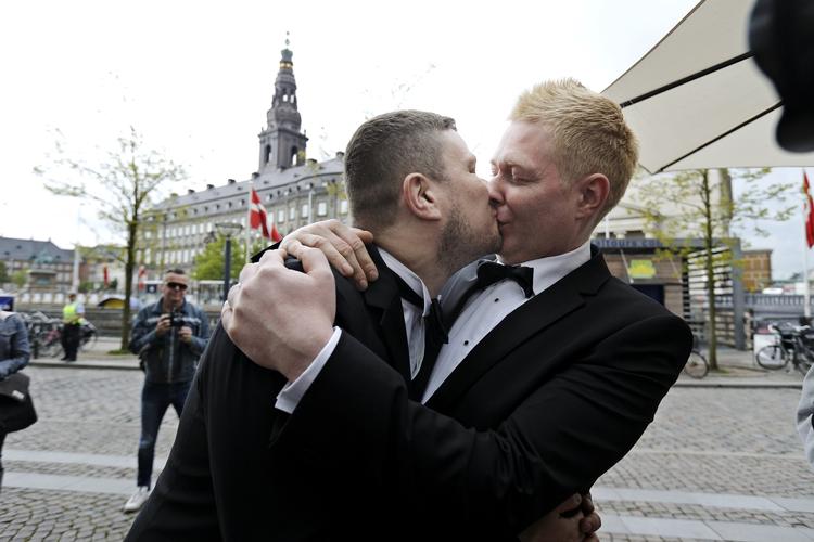 Venner, familie og journalister venter på brylluppets hovedpersoner, men i dag er det ikke kun ét par, der er i centrum.