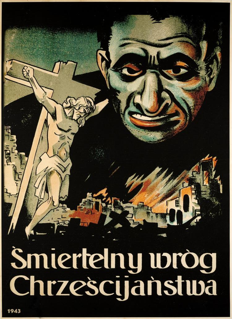»Kristendommens dødsfjende«, står der på polsk under den lidende Kristus på korset, så beskueren ikke skulle være et sekund i tvivl om, hvem der var den onde. Det var jøden.