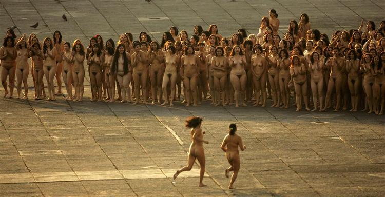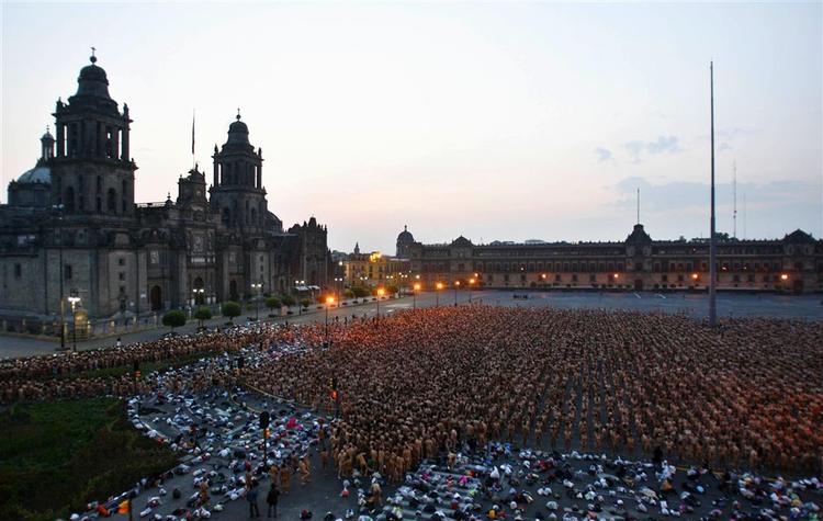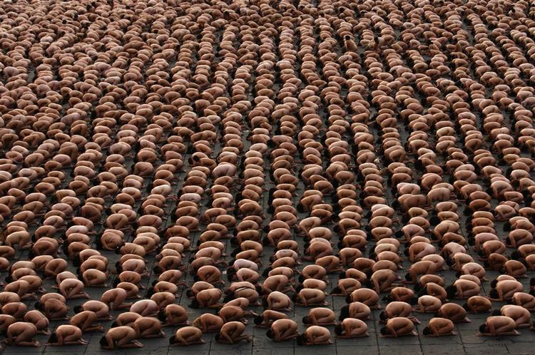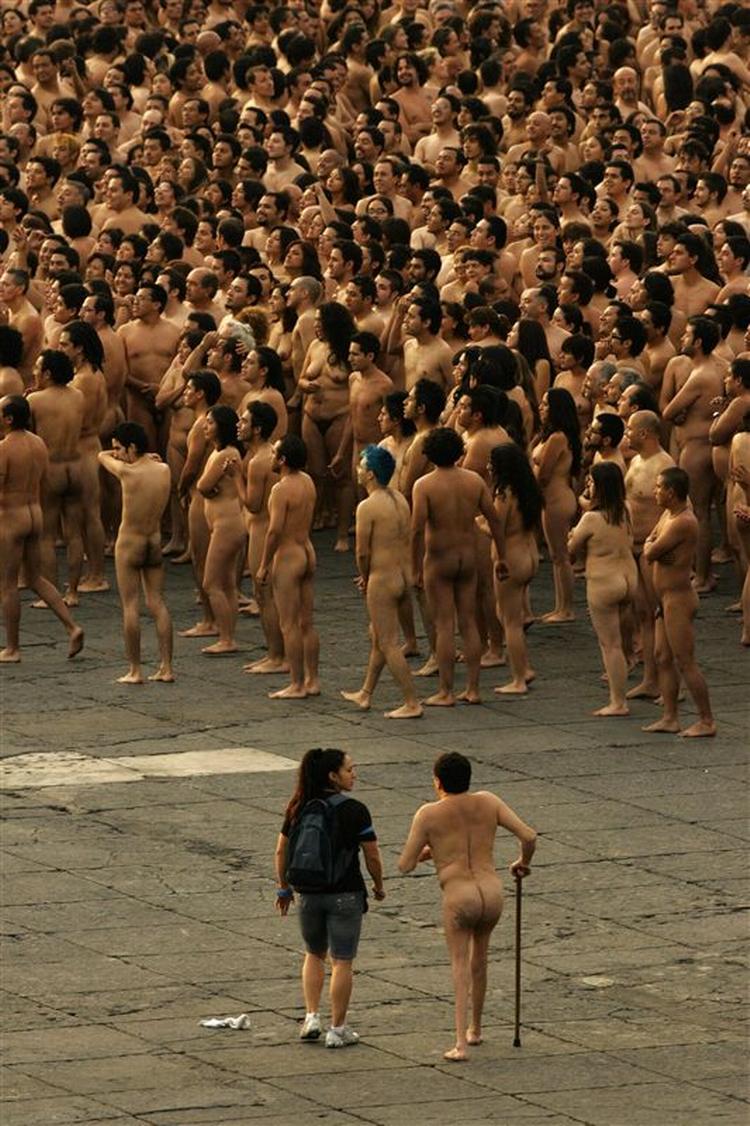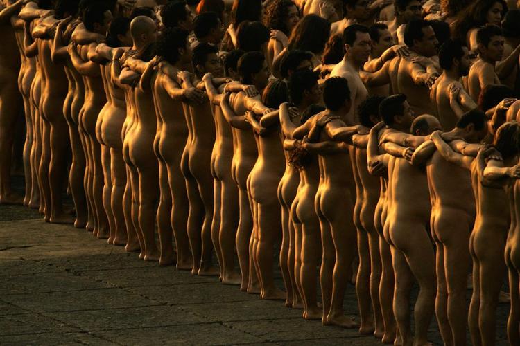 Fotografen bag demonstrationen og dagens skud er selv kendt for at skabe kunst ud fra nøgenhed i stor skala. Spencer Tunick har siden begyndelsen af 1990’erne fremstillet mere end 120 værker med forsamlinger af nøgne mennesker i offentlige rum – 1.800 mennesker på banegården i Buffalo, 1.493 nøgne mennesker i Lyon ved bredden af Rhône og den største forsamling: 18.000 nøgne deltagere i Mexico Citys bymidte.