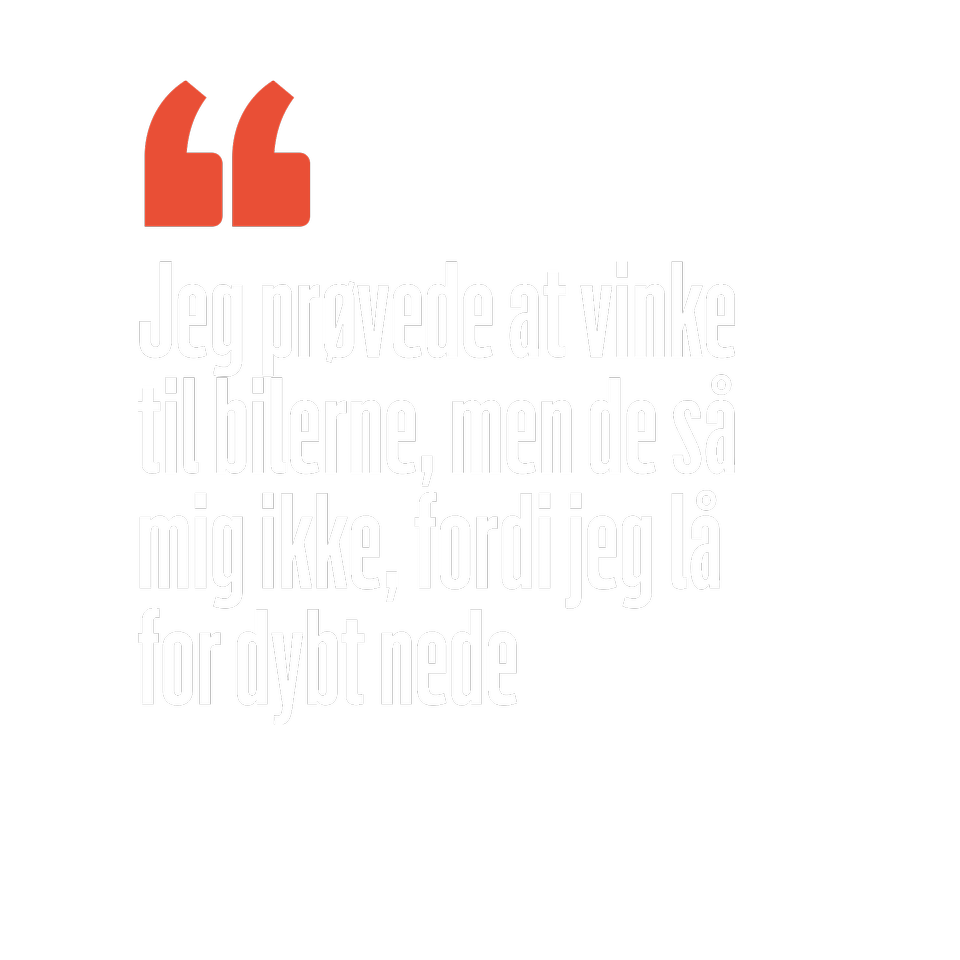 Jeg prøvede at vinke til bilerne, men de så mig ikke, fordi jeg lå for dybt nede