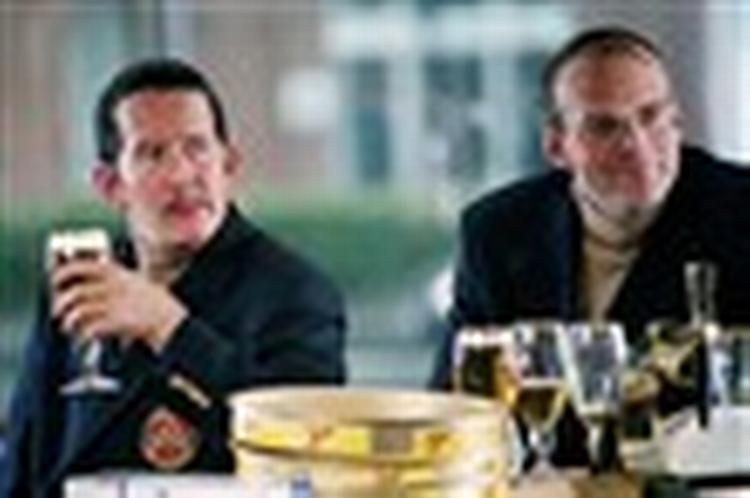 Tordenskjolds soldater på plakaten. Bag kameraet en instruktør, der har det helt fint med at følge en opskrift til punkt og prikke. Når en mikroskopisk romantisk intrige i den dejlige danske provins skal danne baggrund for en uhøjtidelig spøg, hvor den onde forvalter i forbifarten får løn som forskyldt. 'Solkongen', instrueret af Tomas Villum Jensen, ligner på mere godt end ondt en dansk folkekomedie fra genrens til tider temmelig opreklamerede velmagtsdage. Men noget er der alligevel sket. Bowling-scenerne, som ligner et næsten direkte citat fra Coen-brødrenes 'The Big Lebowski', er én af dem. At turde lade kærlighedshistorien udspille sig imellem en stenrig, fordrukken enke på 60 og en ordblind og impotent 30-årig mand, der stadigvæk bor hjemme i sine forældres garage, er en anden! Der er sket ting og sager i dansk film, og allestedsnærværende Anders Thomas Jensen er ikke den mindste af dem. Susse ejer en kæde af solarier og bor muttersalene på sit høje slot. Den halvt så gamle Tommy er på varig hjælp og går i mandeterapi med de to andre småtosser Flemming Kok og Ole Finland. Susse og Tommy er vidt forskellige, men fælles om at savne kærlighed og varme. De møder hinanden, da Tommy har et kort, men katastrofalt, job som elektriker på solcentret. Som Susse og Tommy optræder to af Danmarks store karakterskuespillere, Birthe Neumann og Nikolaj Lie Kaas. Rundt omkring dem bliver der spillet for fuld damp i birollerne. Thomas Bo Larsen er på hjemmebane som den maniske Flemming Kok. Kun han kan fyre »der findes ikke impotens, kun grimme kællinger!« af , så det i dén grad synger vellystigt i netmaskerne. Niels Olsen finpudser rollen som småklam og indeklemt, mens Peter Gantzler inhalerer endnu en skurk, og Kristian Halken raffinerer rollen som resigneret læge til perfektion. Jens Okking og Kirsten Lehfeldt er Tommys forældre. Ole Thestrup er krakilsk elektriker, og, jo, det ligner i al sin trygge forudsigelighed en god gammel dansk folkekomedie. Men hvad gør det, når det rent faktisk er sjovt? Hvilket det er, takket være Anders Thomas Jensens mundrette, respektløse replikker. De smælder som kindheste og får forståeligt nok skuespillerne til at snuble over hinanden for at komme til fadet. Nikolaj Lie Kaas som den kiksede Tommy og Birthe Neumann som den slidte og smukke Susse er faktisk begge to så overbevisende, at man bedre kan forstå, hvad han ser i hende, end hvad hun ser i ham. Hvilket betyder, at en potentielt bevægende og anderledes kærlighedshistorie ikke når at blive følelsesmæssigt realiseret. Kærligheden dør af grin og en spændende mulighed halvvejs forpasset. Men det er nok de færreste, der vil bide mærke i det for lutter moro. Fortalt uden svinkeærinder er det en film, der prøver at inkarnere essensen af Okking-figurens livsvisdom: »Verden er stor og dejlig, og du skal ikke spise gul sne«.