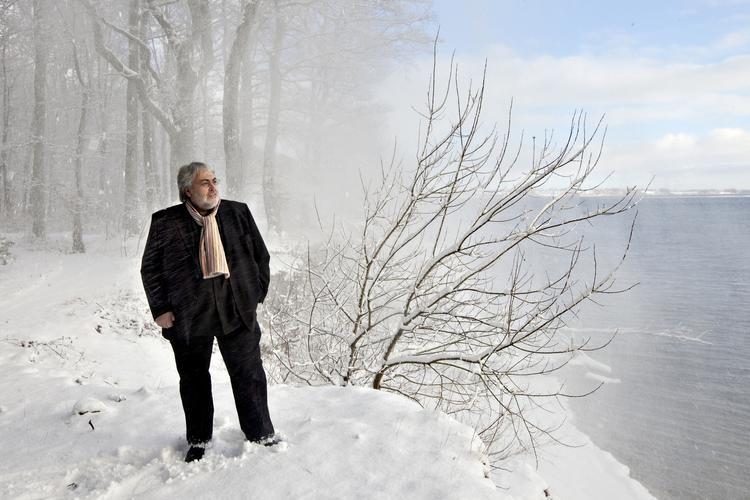 »Jacob. Lea. Og Flemming«, siger og han lægger en flad hånd på brystet, idet han siger sit eget navn. Herefter slår han samme hånd ud mod vandet, i retning mod en kuperet ø på den anden side, hvor spredt sol nærmest slår gnister mod de hvide skove.