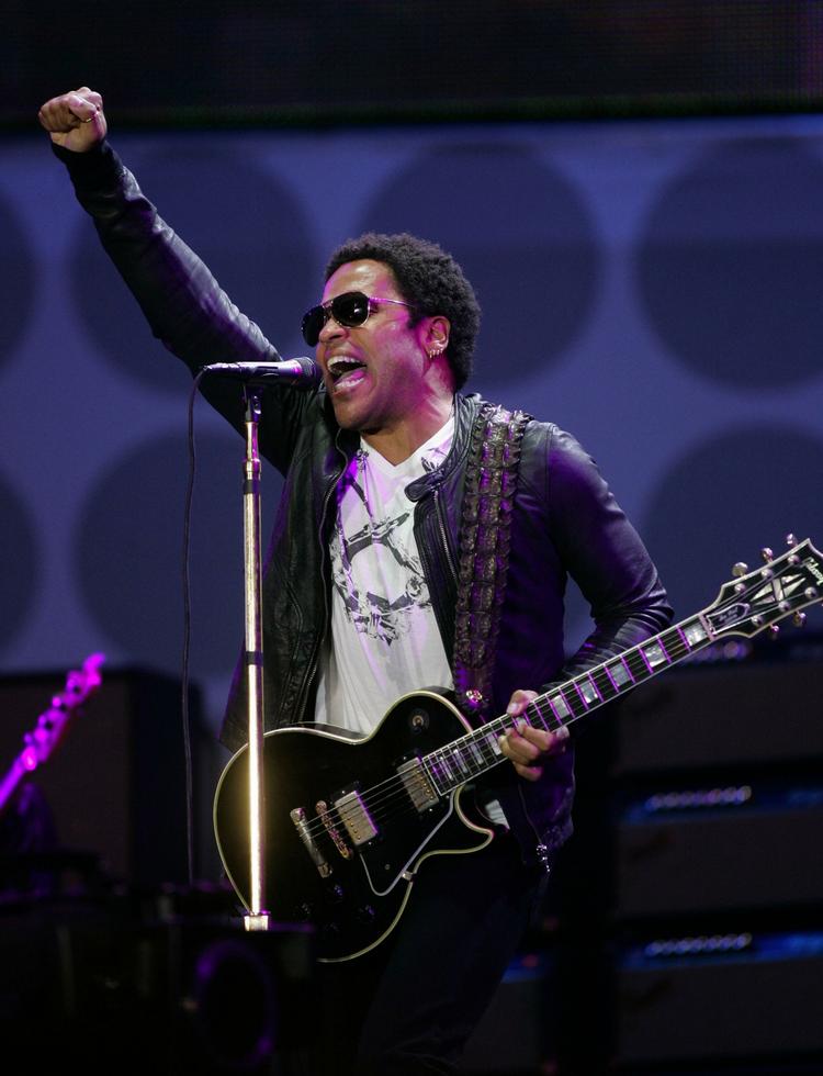 I noget, der ligner en tropisk have, sidder musikeren Lenny Kravitz.