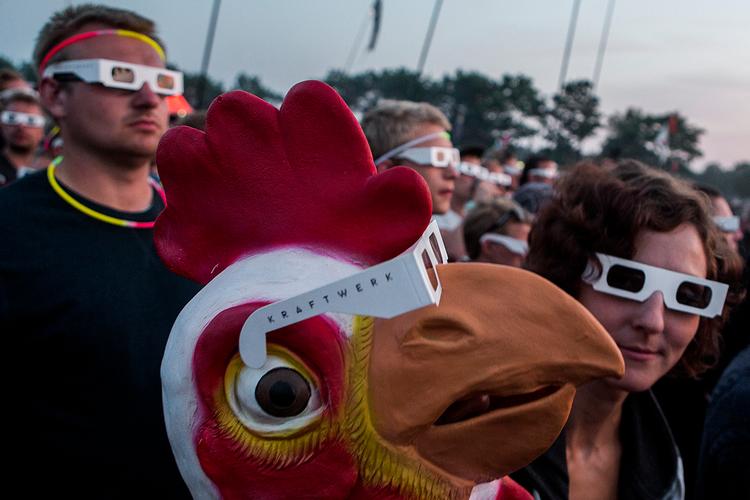 De fire ældre tyskere, Fritz Hilpert, Henning Schmidt, Falk Grieffenhagen og det eneste af de originale medlemmer, Ralf Hütter, stod bag hver deres pult i ens, spindelvævsmønstrede heldragter foran en 3D-storskærm, der sendte vitaminpiller, rumkapsler og TGV-tog ud i hovederne på (især de forreste rækker af) publikum.