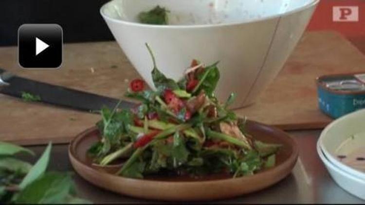 Makrel i tomat sendes en tur til asien, som en super skøn sund salat.