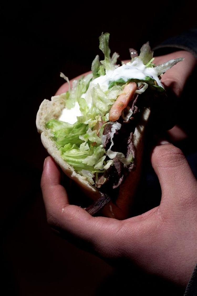 En lille shawarma koster 15 kroner på Nørrebrogades største shawarmabar, Konya Kebab. Det er for billigt, mener de unge mænd bag disken. Den lave pris betyder, at det er svært at tjene penge på at sælge shawarmaer på Nørrebrogade på trods af lange arbejdsdage i de sydende køkkener.