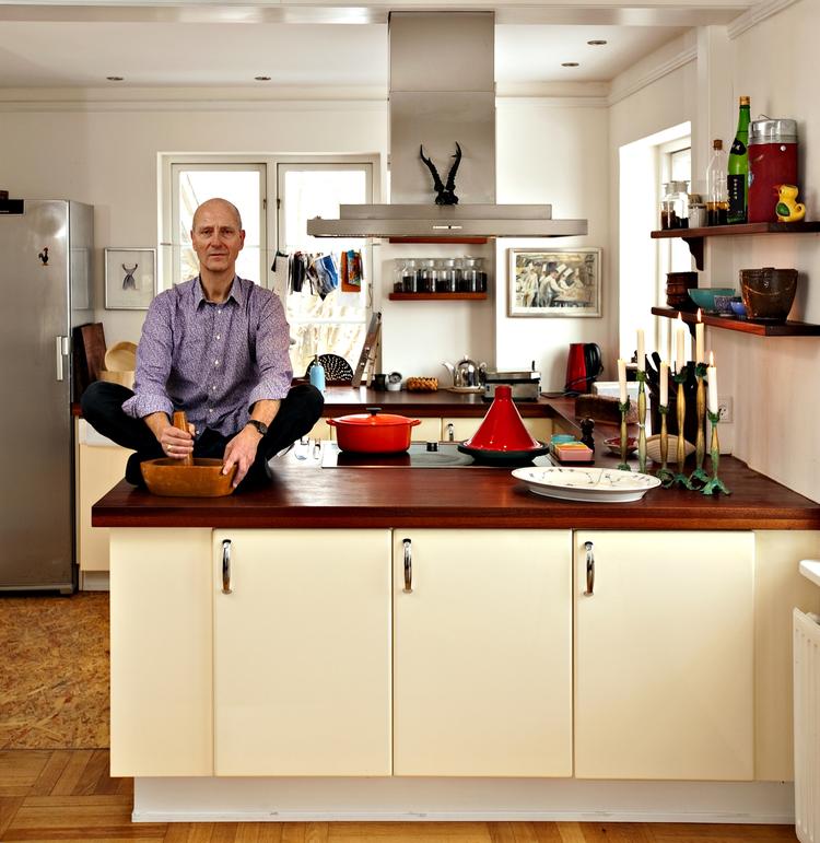 Men også derhjemme i privaten har han styr på køkkenredskaberne. Til ære for Tjek.dk viser han rundt i sit personlige køkken.