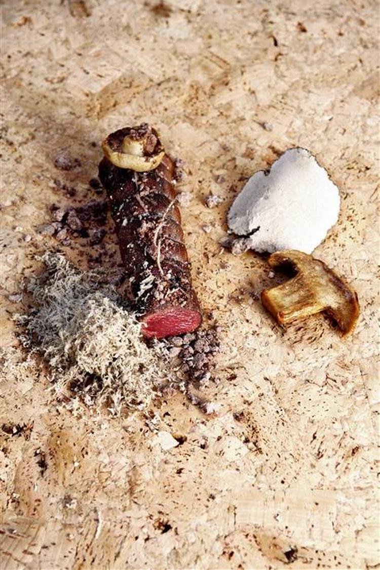 Pocheret/grillet råbuk med vårmusseron, sommertrøffel og bitter chokolade Stegning af kød Ved råbukken har jeg valgt en meget nænsom proces, nemlig at pochere kødet først ved en lav temperatur (cirka 52 celsius grader) for derefter at grille kødet hårdt i et par sekunder lige til sidst. Denne metode gør, at kødet for det første bliver perfekt hver gang derudover så undgår jeg, at kødet bliver tørt i kanten a la roastbeef.
