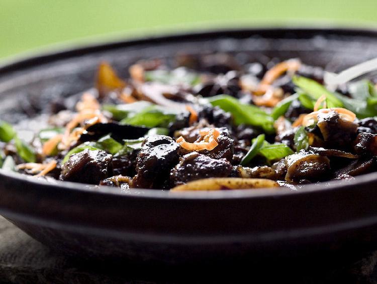 Hæld saucen over i en gryde, og kog den ind, til den er tyk og dejlig. Smag til med østerssauce, sukker, de to slags soja og limesaft, til saucen har en perfekt balance mellem salt, sødt, syrligt og skarpt. Hæld over kødet igen.