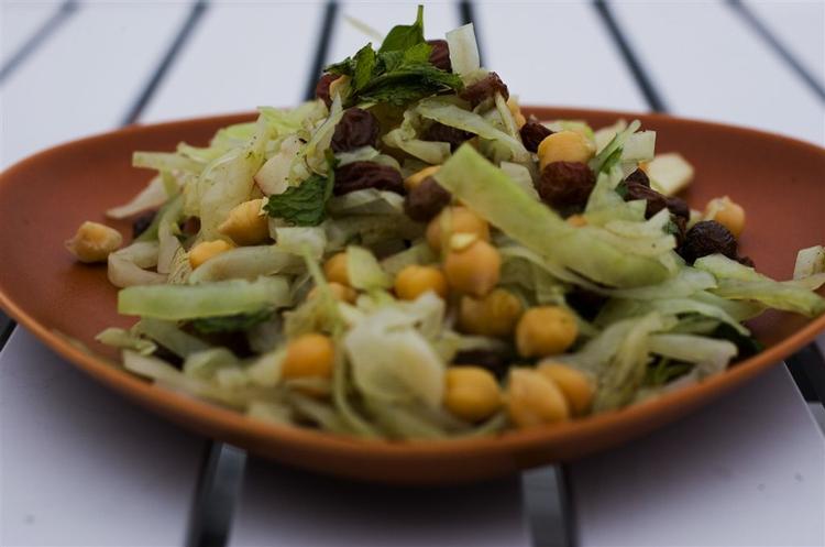 ’Udvid’ salaten med soltørrede cherrytomater i jomfruolie, lidt udblødte mandler, melon skåret i tern eller endda en lille, lille smule små kapers. Sådan gør du Læg rosinerne i blød i vandet natten over og hæld vandet fra. Vend rosiner og de resterende ingredienser sammen.