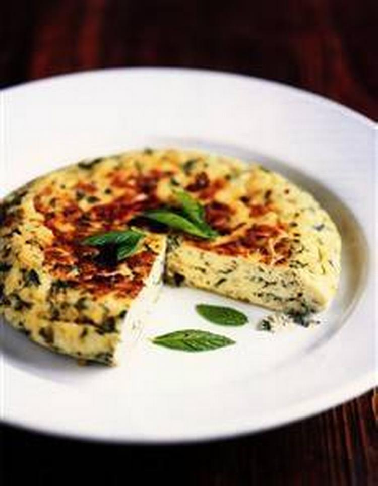Omelet med mynte og fåreost, fra Rom.