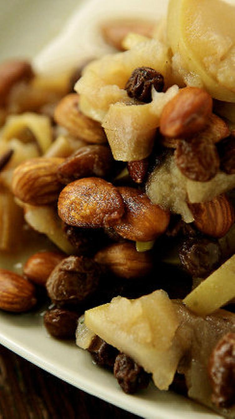 Der slet ikke er tilsat sukker i denne dessert, hvis sødme udelukkende stammer fra æbler og rosiner, der er ’strøget med hårene’, så de har åbnet for ’skatkammeret’.
