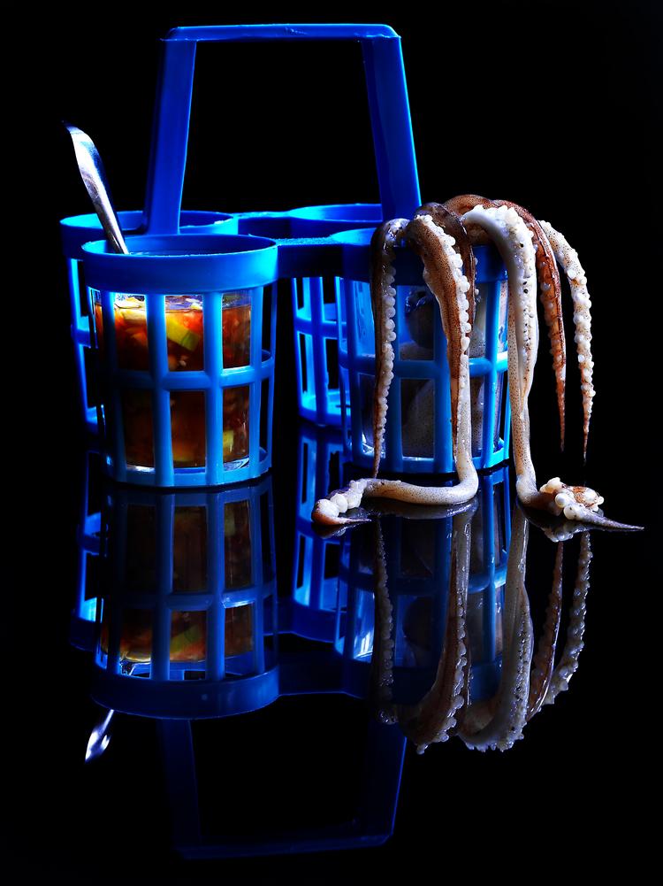 Sådan gør du: Start med saucen. Skræl agurken, flæk den på langs, fjern kernerne med en teske og skær den i små tern. Snit chilien fint. Knus peanuts i en morter og bland det hele sammen med chilisauce til en sauce. Skær blæksprutten i mindre stykker og mariner den i olie og salt. Grill blæksprutten på en varm grill i to minutter på hver side. Anret de varme blæksprutter med peanutsauce.