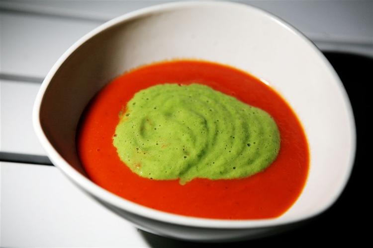 Suppen kan også spises blandet 50/50 med melon-tomatsuppen.