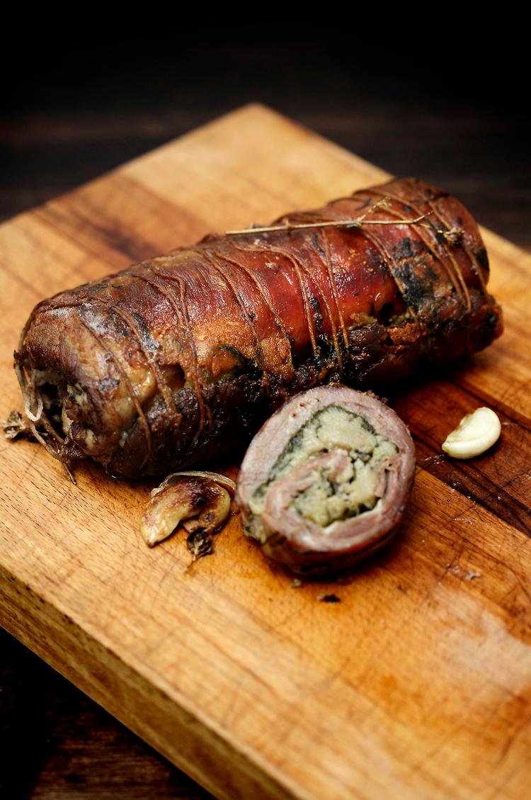 Sådan gør du Lammebrystet frigøres for benene ved at lade så lidt kød blive tilbage på benet som muligt. Den store sene, der sidder på indersiden af brystet, skæres fra. Bland salt med vand, og lad kødet ligge i saltlagen i 24 timer. Dette kan med fordel gøres i en pose. Den efterfølgende dag skylles brystet for overskydende salt og duppes helt tørt. Ramsløgene og brødet hakkes, og begge dele smøres på indersiden af kødet. Forsigtigt foldes stegen sammen, og den rulles tæt sammen med kødsnor. Pak stegen i to lag sølvpapir for at sikre, at kødet ikke tørrer ud under den lange tilberedning. Læg kødet i en ovn på en rist med en bakke med vand under og tilbered det ved 80 grader i 10 timer. Steg brystet af på alle sider på en pande før servering.