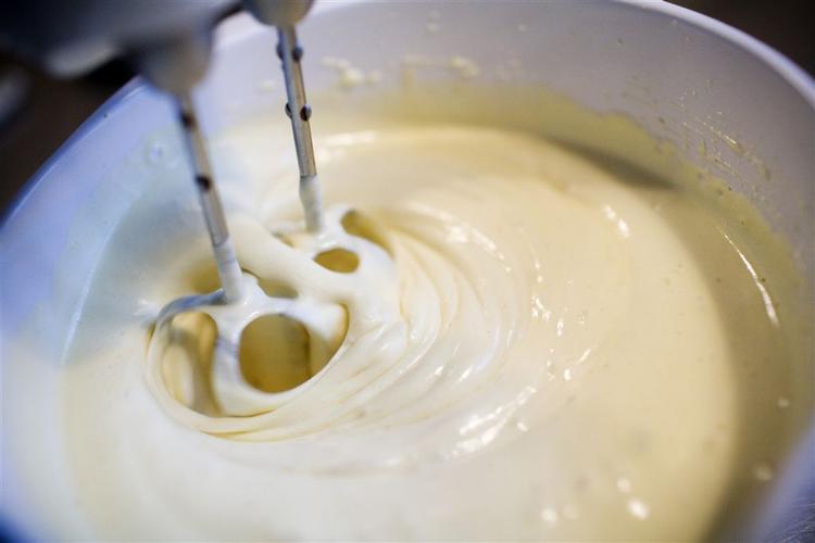 Når de er stive, drysses resten af sukkeret i lidt efter lidt og piskes et par minutter.