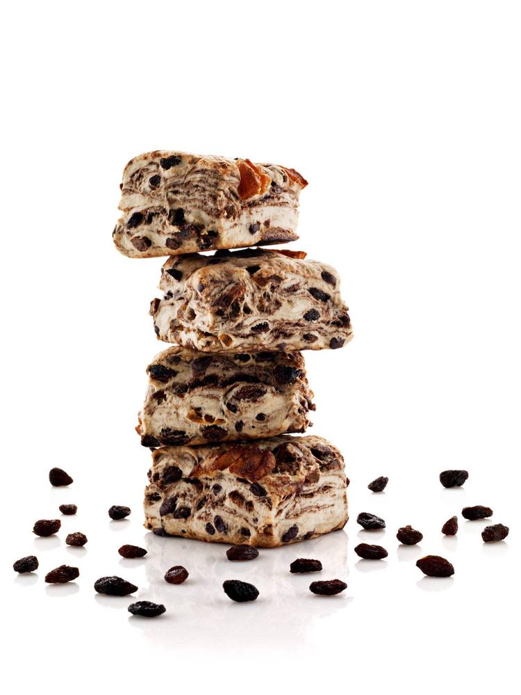 - Ælt de tørrede frugter og den hakkede chokolade ind i dejen.