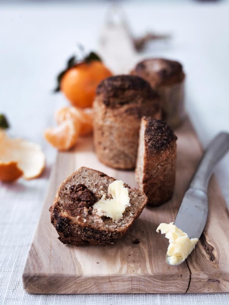 - Skær nougat og marcipan i terninger på ca. 1 x 1 cm. Vend dem ind i dejen. Stil dejen tildækket i køleskab til næste dag. Slå ikke dejen ned, men fordel den i muffinsforme eller sæt boller af dejen på en plade med bagepapir med en spiseske, som løbende dyppes i vand – eller brug våde hænder.