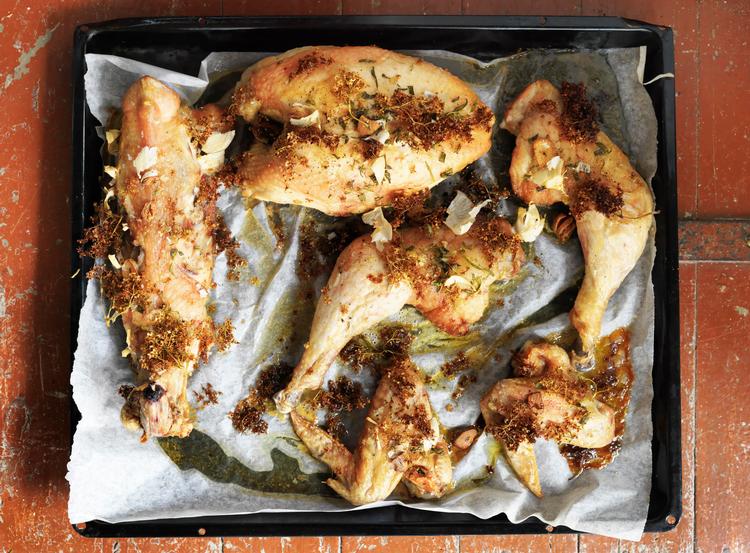 Ovnstegt kylling med hyldeblomst, rosmarin og hvidløg