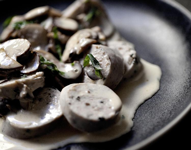 Skær inderlåret fri for alt, hvad der måtte være af sener, og bland det godt med saltet.