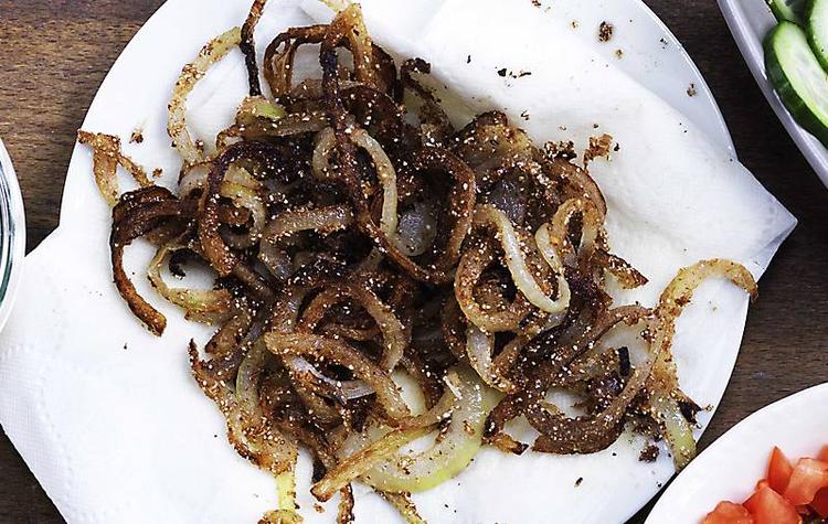 Varm en pande op med olien, og steg løgene ad et par omgange ved middelhøj varme i ca. 5 minutter.