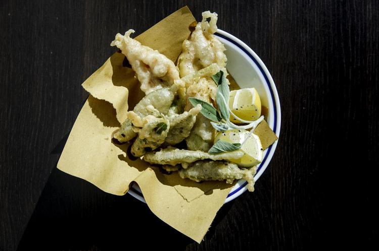 De friterede blomster fra squashplanten er en dejlig sommerlig forret. Den er tilmed nem, hurtig og god at imponere gæster med: Tempuradejen gør blomsterne sprøde og fede udenpå, og når man skærer i dem, løber den bløde og syrlige ost ud.