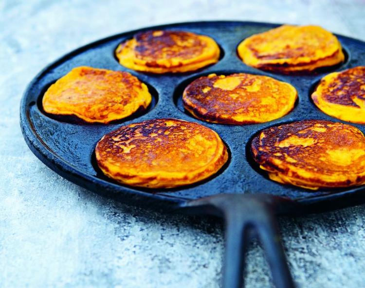 Den her opskrift virker også med andre grøntsagsrester, og pandekagerne med græskar kan bruges både i det søde og det salte køkken.