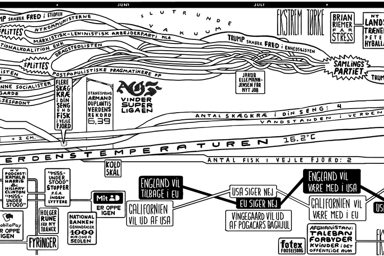 I slutningen af året begynder en af de tegnere, som Politikens læsere kender allerbedst, Philip Ytournel, på en myldretegning, hvor han forudsiger sådan cirka alt, hvad der kommer til at ske i det nye år.