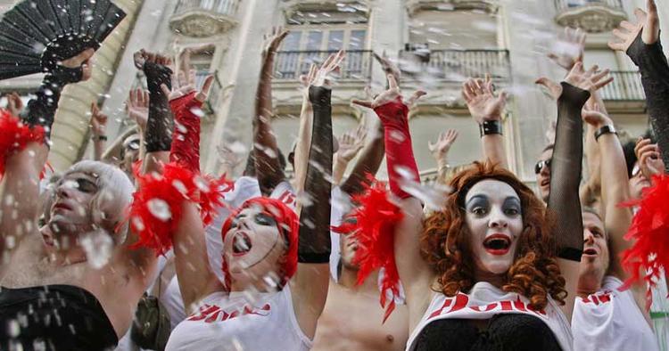 »Ja, vi er ved at varme mentalt op til Orgullo LGTB«, fortæller den 41-årige spanske bøsse Carlos, der må råbe for at overdøve det højstemte publikum, der har øjnene rettet mod den storbarmede spanske drag queen på scenen: