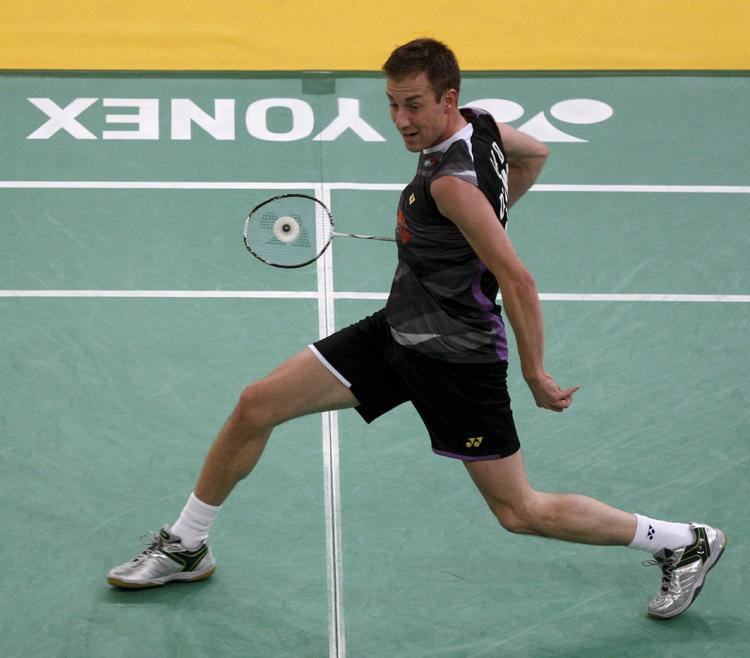 Danskeren, som tidligere har vundet turneringen, tabte torsdag til japaneren Kenichi Tago i tre sæt 21-19, 11-21, 16-21.