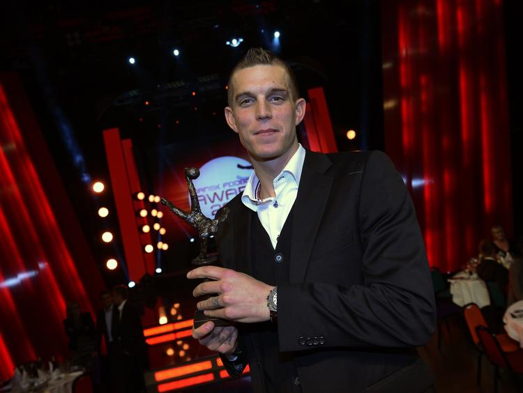 Det var en beæret Daniel Agger, som modtog prisen som årets fodboldspiller ved Dansk Fodbold Award fra scenen i Cirkusbygningen i København.