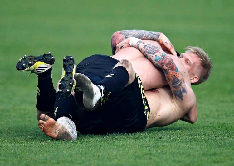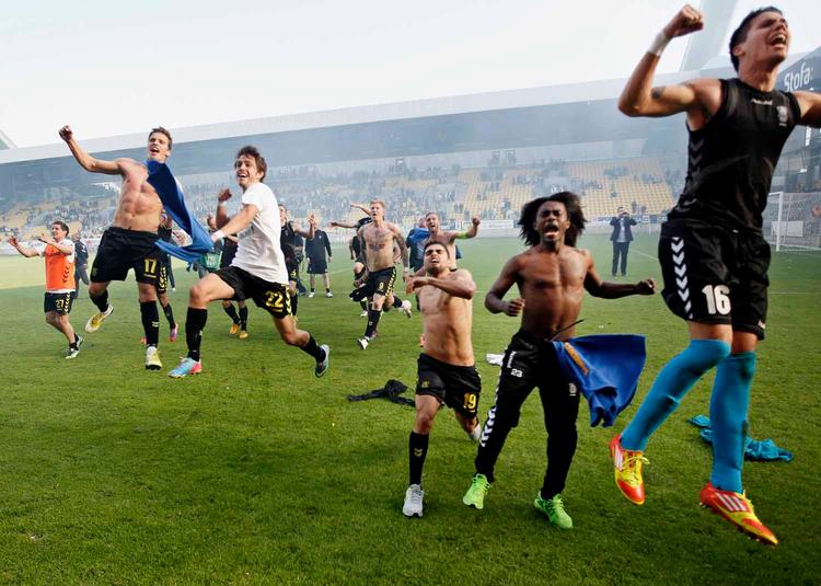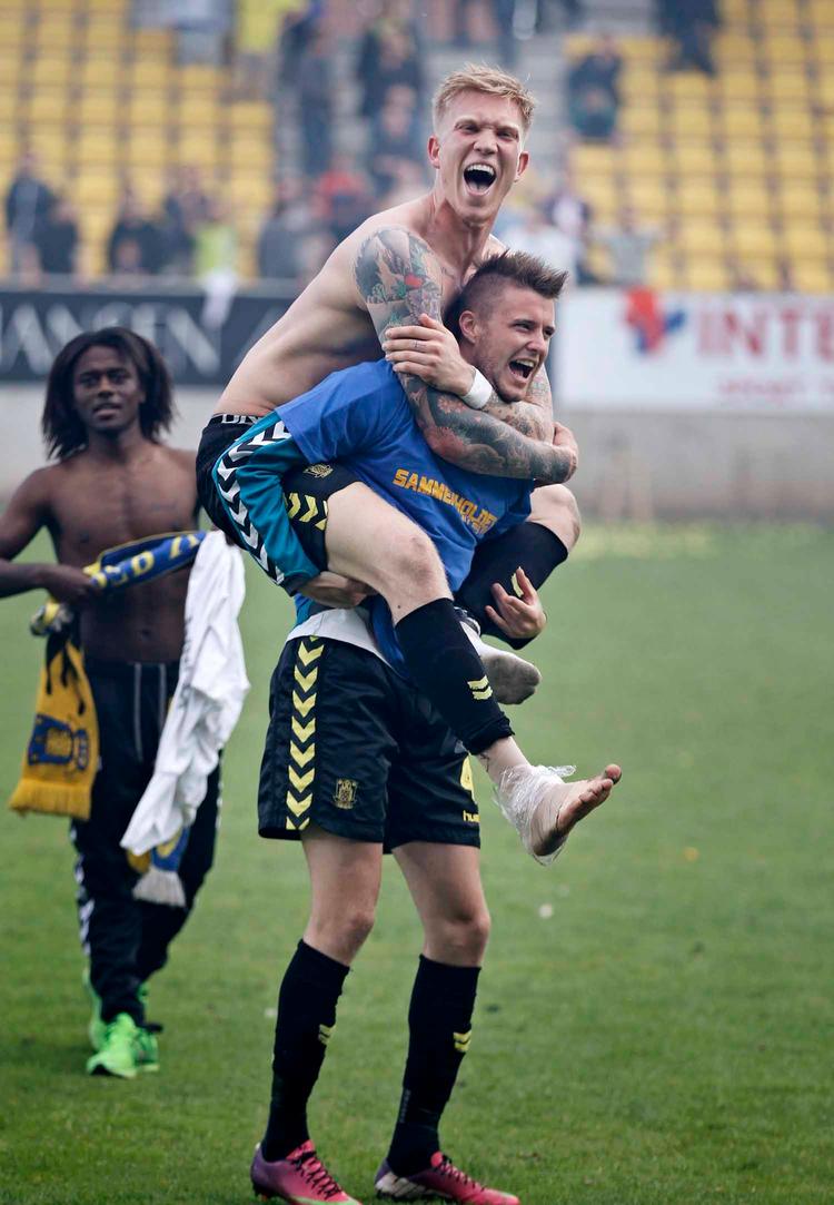 Der var fodboldfest i Brøndby i går, da det lykkedes holdet fra Vestegnen at undgå nedrykning til 1. division. De blå-gule måtte dog vente til sidste spillerunde, før den gyldne billet til næste års Superliga blev reddet.