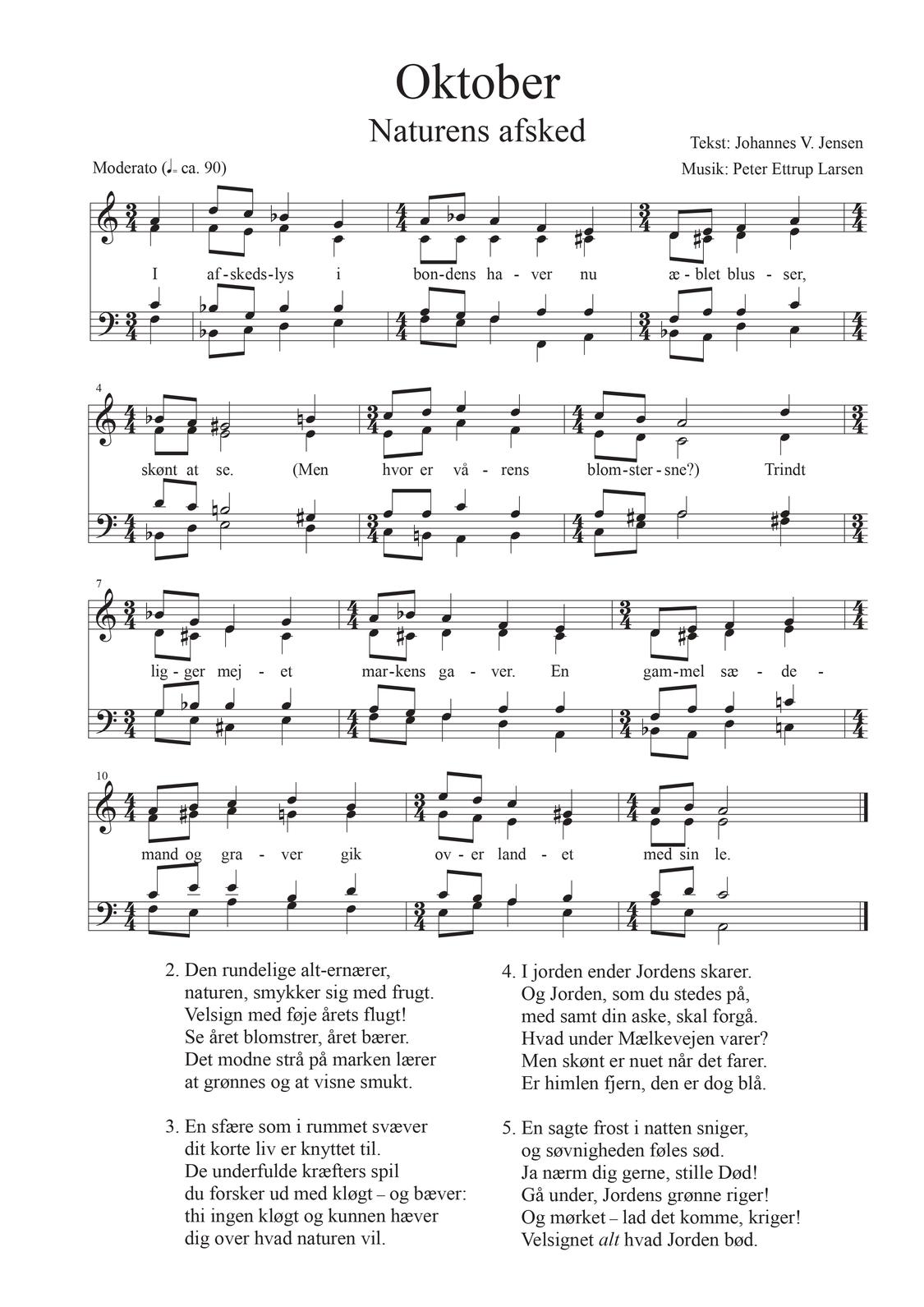 Oktober måneds sang har tekst af Johannes V. Jensen; originaltitlen er ’Naturens afsked’, og sangen synges af Sankt Annæ Gymnasiums Koncertkor under ledelse af Flemming Windekilde.
