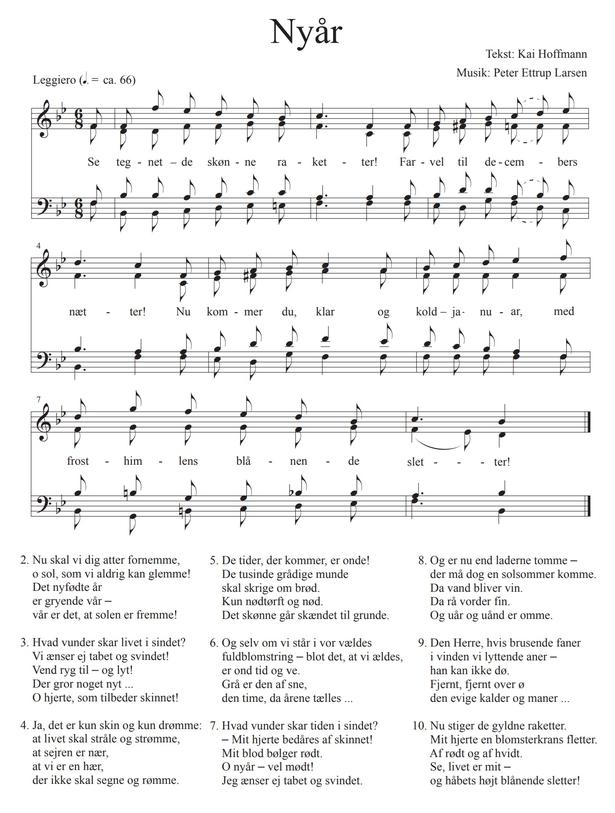 Nytårssangen er skrevet af Kai Hoffmann under originaltitlen ’Nyår’ og fremføres af Coro Misto og Aalborg Katedralskoles kor dirigeret af Søren Birch.