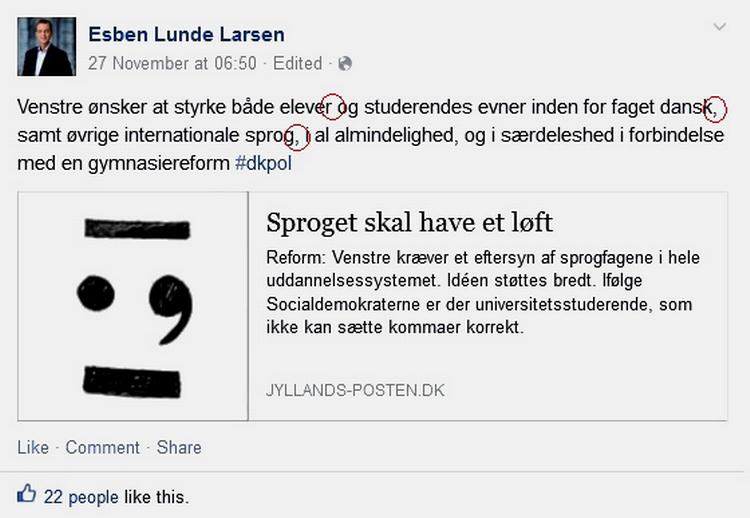 »Der skal sættes fokus på sprog hele vejen rundt. Det handler om vores færdigheder inden for vores eget sprog, dansk, herunder grammatik, og så handler det om vores færdigheder inden for andre sprog – f.eks. engelsk og tysk. Ambitionsniveauet skal langt højere op«, sagde Venstres undervisnings- og forskningsordfører, Esben Lunde Larsen, til Jyllands-Posten.