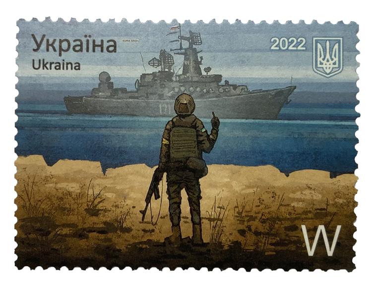 Det udskrev 1. marts en konkurrence om et frimærke, der kunne illustrere situationen omkring Slangeøen i Sortehavet. Her gav grænsevagterne den russiske missilkrydser ’Moskva’ fingeren, da de blev opfordret til at overgive sig.